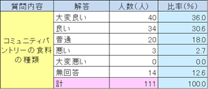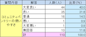 現在、コミュニティパントリーの会員は150世帯以上となり、フードドライブ、フードバンクで提供された食料を自由に選んで持ち帰ることができるシステムとして機能しています。利用者へのアンケートでは利用しやすく、良いという声が寄せられました(アンケート結果、表3)。