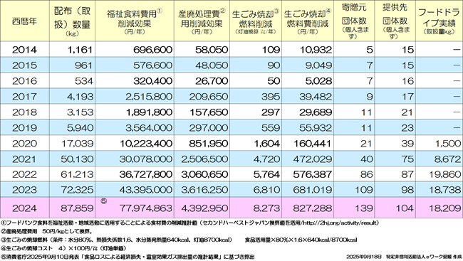 特に、フードドライブは、一昨年以降、地域循環型フードバンク活動を目指し、県の支援を受け、地域のスーパーマーケットであるフジグループ、コープえひめと覚書を交わして連携事業を進め、2022年度約19.9トン/年、2023年度約18.7トン/年、2024年度18.2トン/年となり、安定して家庭系の食品ロス削減に寄与することができています。