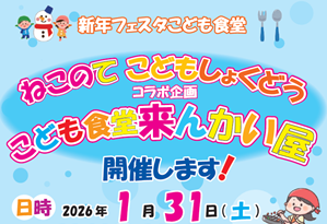 ![]() ■2026年1月19日 こども食堂 来んかい屋 1月31日(土) こども食堂来んかい屋を開催いたします! |